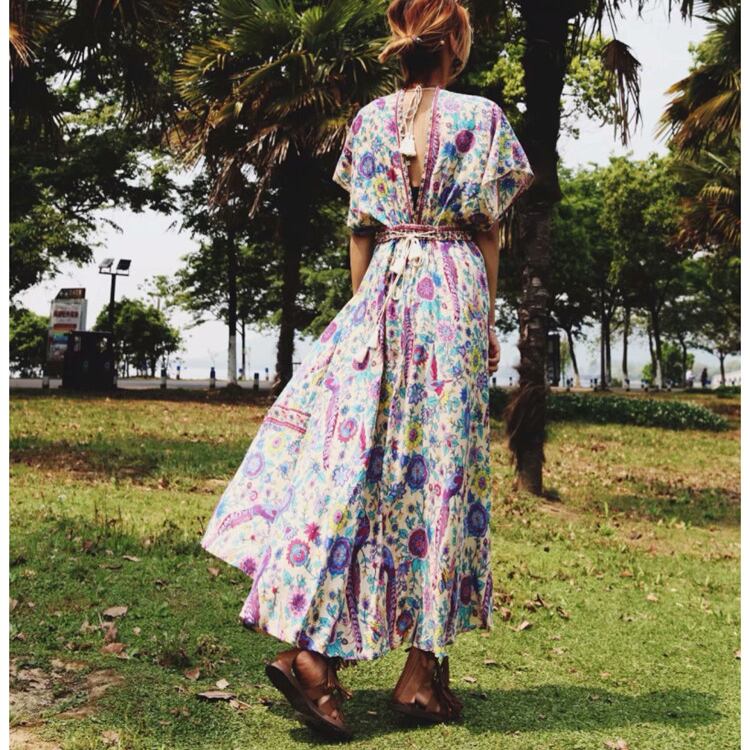 トレンドのボヘミアンムードが大人っぽいマキシ丈のワンピースです。