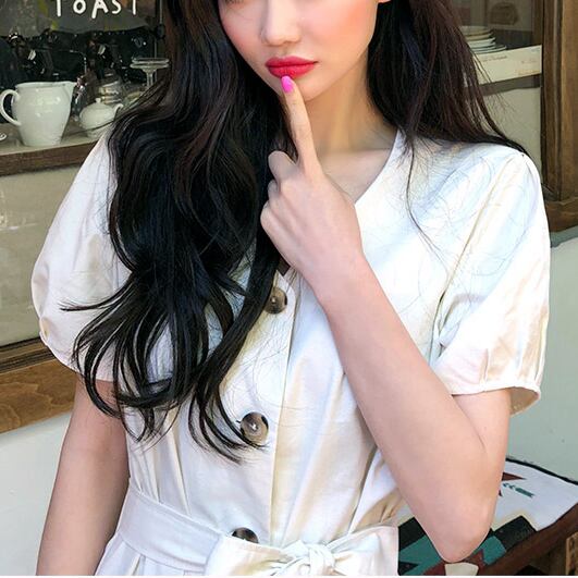 フロントボタン ティアード ワンピース リボンベルト ロング丈 マキシ丈 半袖 Vネック ハイウエスト 大人可愛い カジュアル フェミニン ナチュラル レトロ キュート 清楚 オフィス 通勤 デート 女子会 大きいサイズ 夏