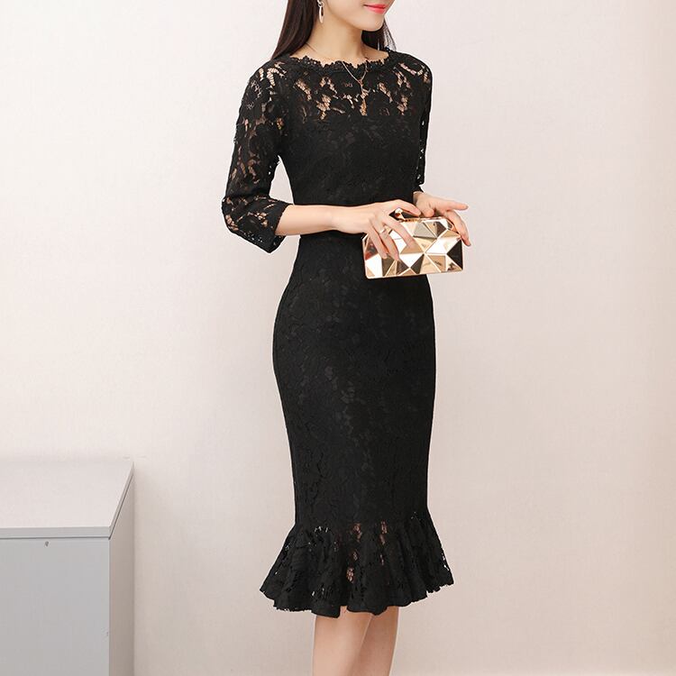 上品な大人レディに!花柄の総レース&マーメイドシルエットで