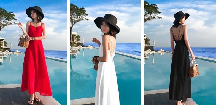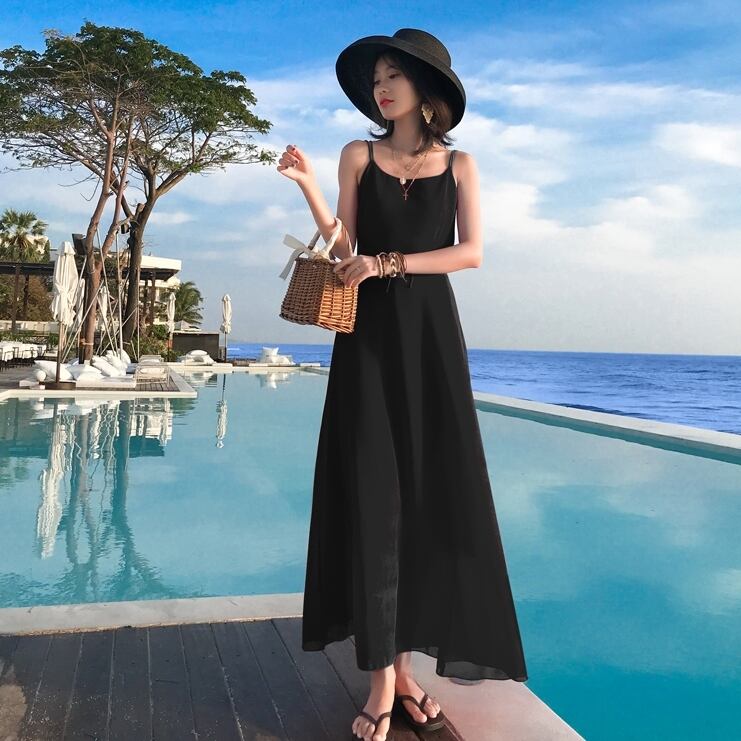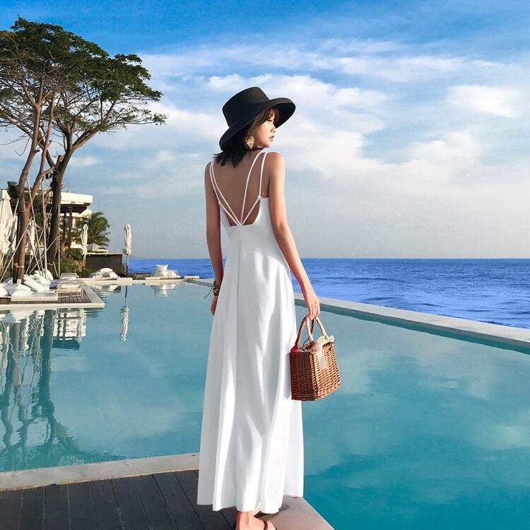 全3色 スリング ドレス ワンピース ロング ワンピ 背中開き セクシー パーティー お呼ばれ リゾート 無地 シンプル フレア 春 夏 大人 上品 シック