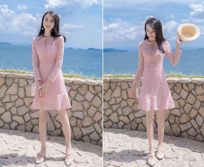 上品でクラシックなデザインですが、鮮やかなピンクにミニ丈がフェミニンな印象を与えてくれます。