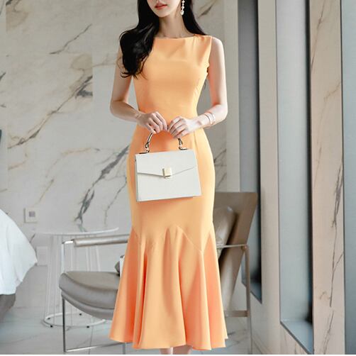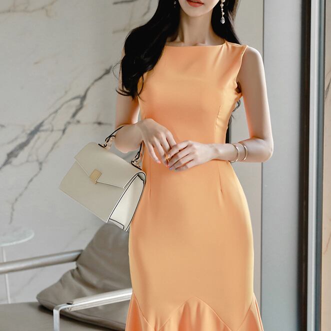 フレアワンピース マーメイド タイト ひざ丈 ミモレ丈 ハイウエスト ラウンドネック ワンピ 大人可愛い きれいめ フェミニン エレガント フォーマル セクシー パーティー デート 女子会 夏