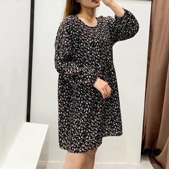 小花柄 フラワー ワンピース ハイウエスト ゆったり ラウンドネック 長袖 ワンピ ショート丈ミニ丈 可愛い カジュアル 大人可愛い レディース ガーリー レトロ 清楚 上品 お出かけ 通勤 買い物 デート 女子会 春
