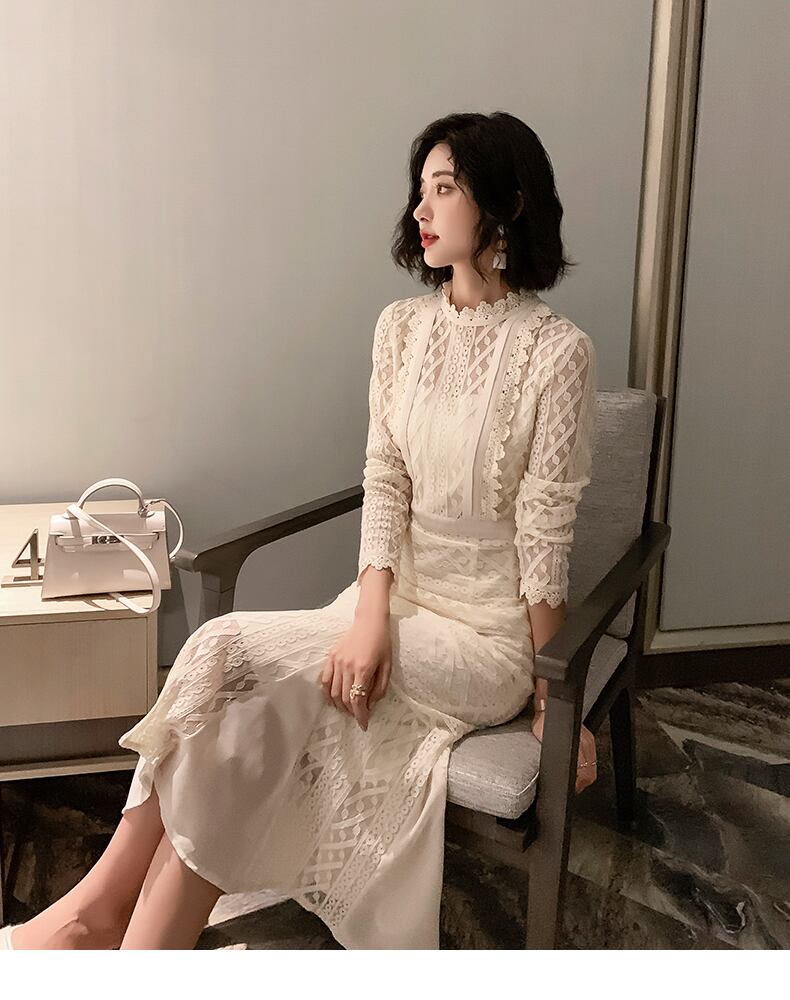 レースのディテールが美しいロング丈ワンピースドレスです。