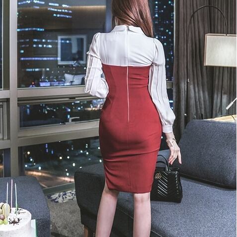 全2色 ツーピース風 ワンピース タイト ベアワンピ シャツワンピ ボタン スリット Vネック スリム セクシー 大人 エレガント クラシック 上品 レディース バックジップ 春 秋