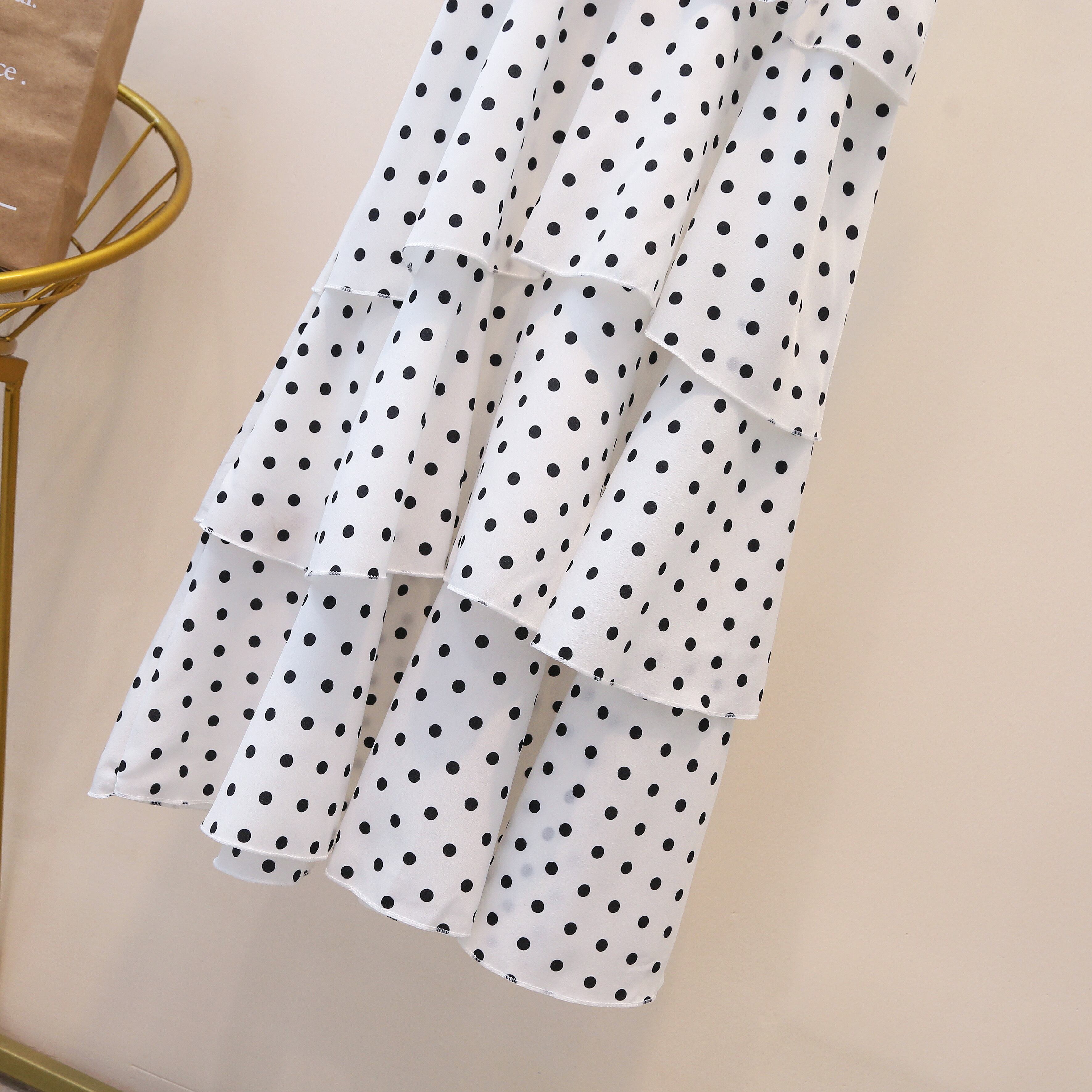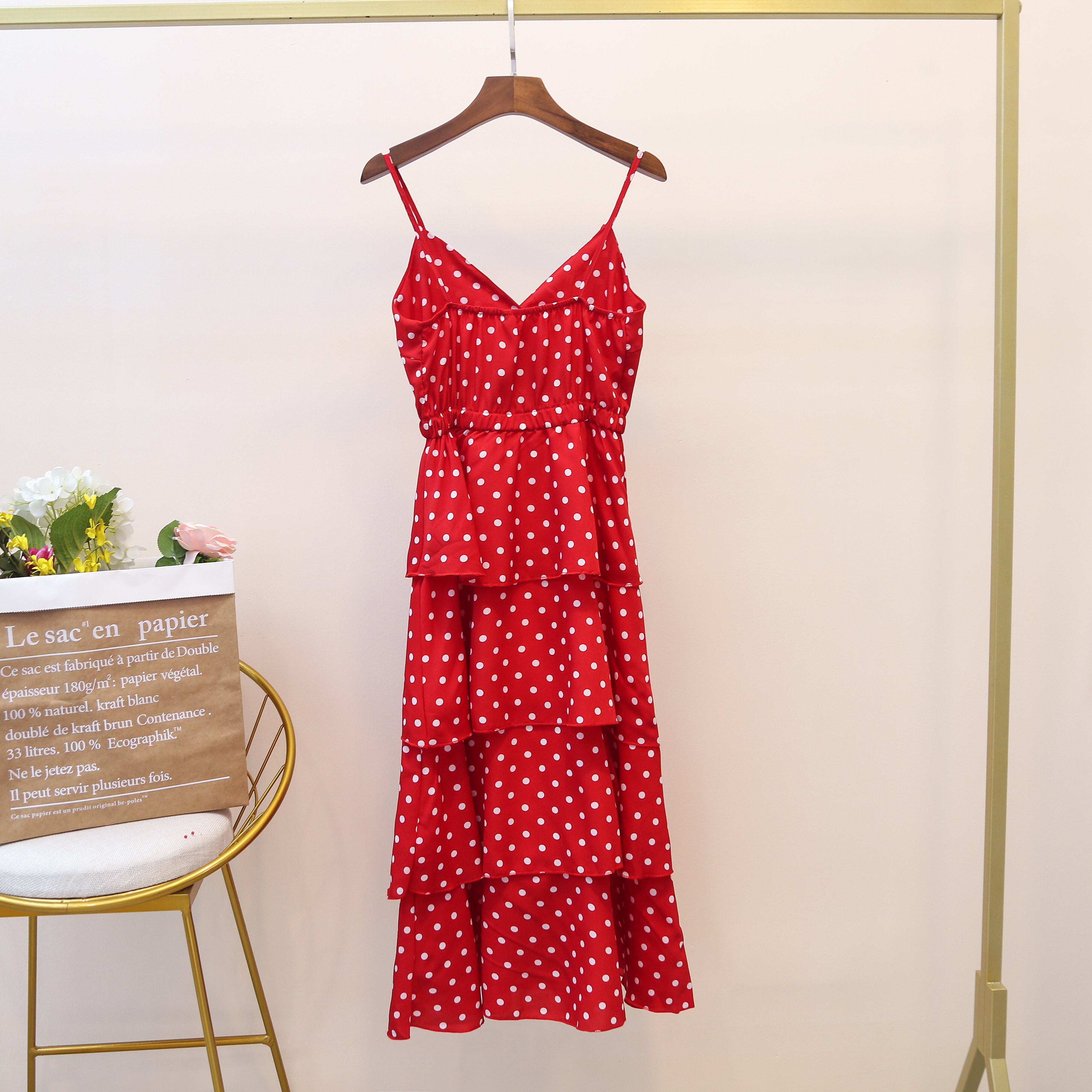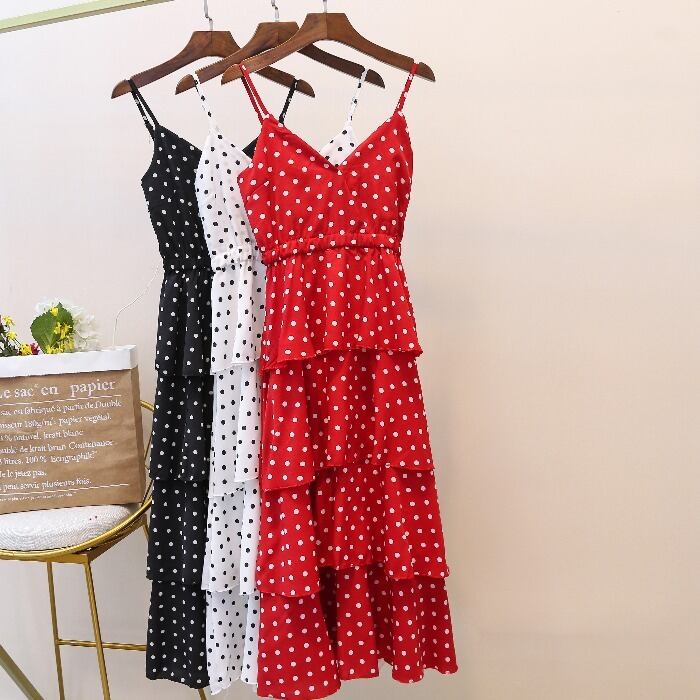 全3色 4段フリル ドット 水玉 フリルワンピース ティアードワンピース リゾートワンピース ワンピース キャミソールワンピ ロング丈 マキシ丈 ハイウエスト ノースリーブ Vネック キャミワンピ ワンピ 大人可愛い トレンド フェミニン セクシー カジュアル ガーリー リゾート 旅行 デート 通勤 女子会 大きいサイズ 夏