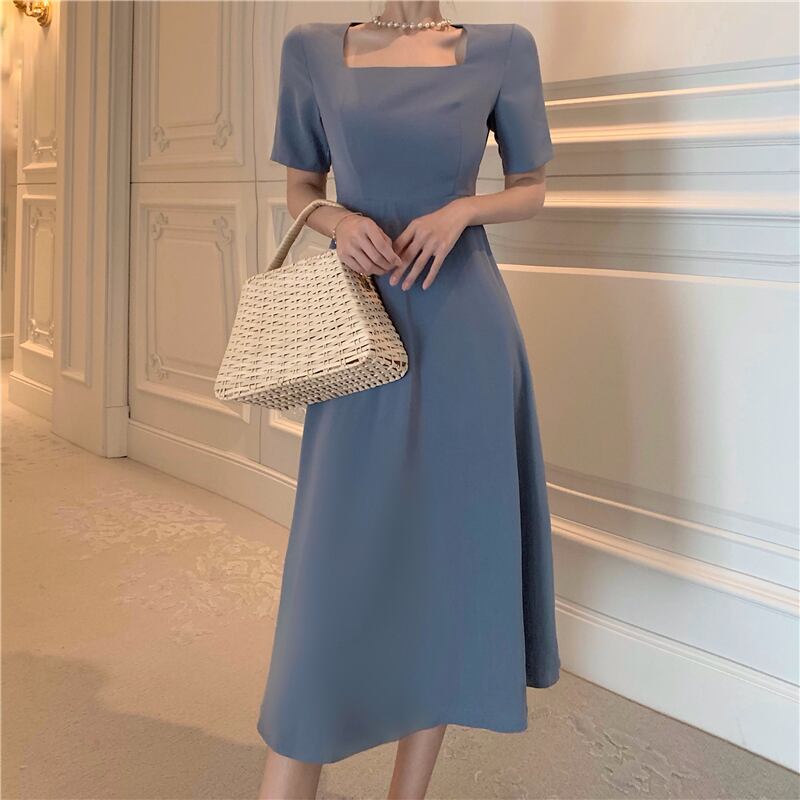 デコルテをキレイに魅せるスクエアネックが特徴的なAラインワンピース。
