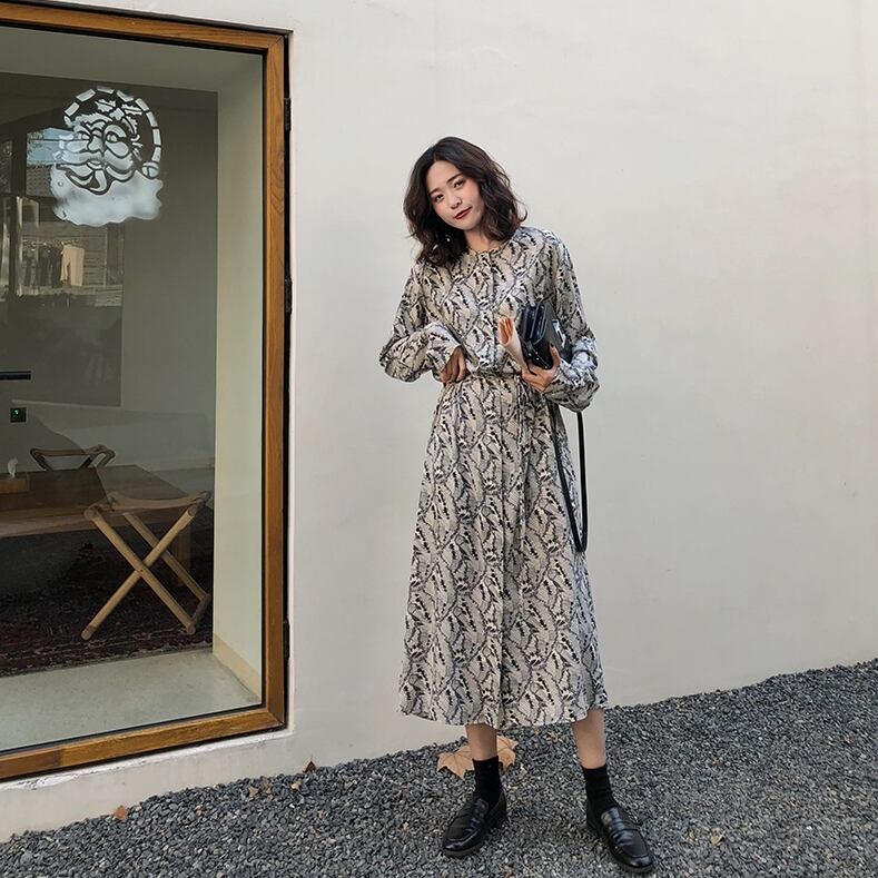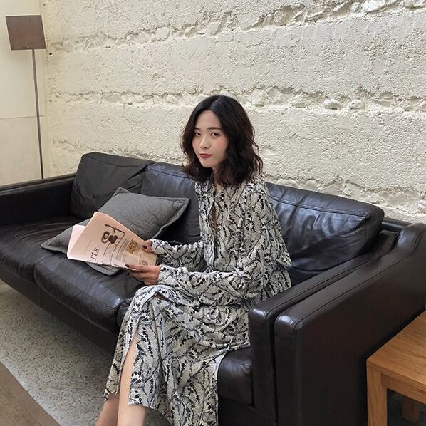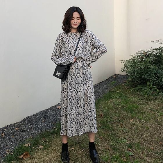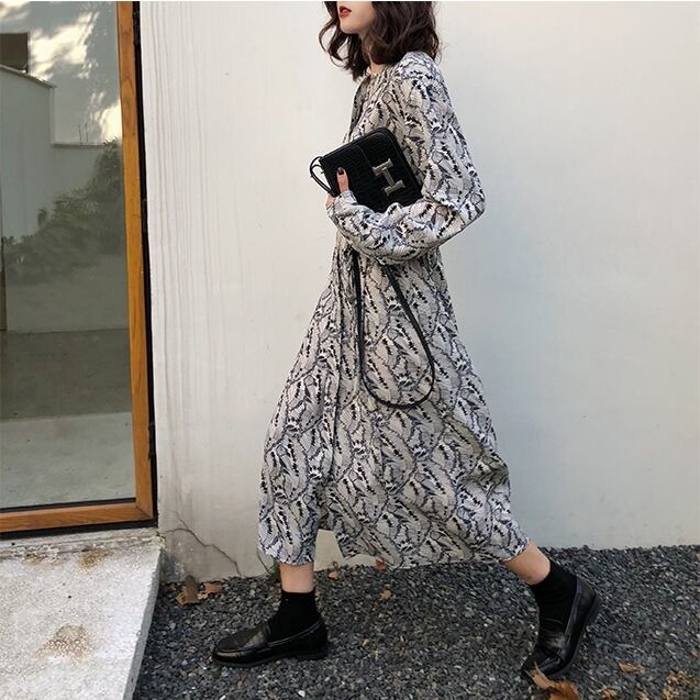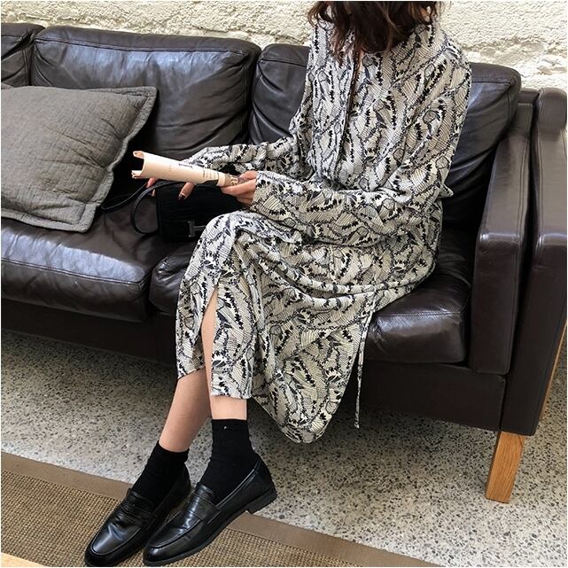 ボタニカル柄が上品なロング丈ワンピースです。
