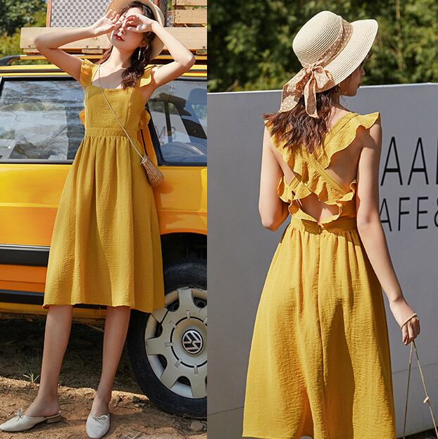 夏にぴったりなコットン素材のバックコンシャスワンピースです。