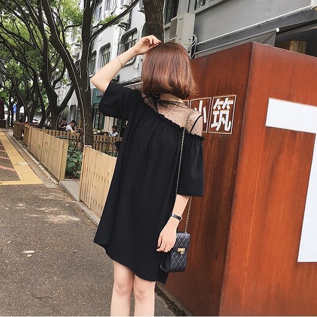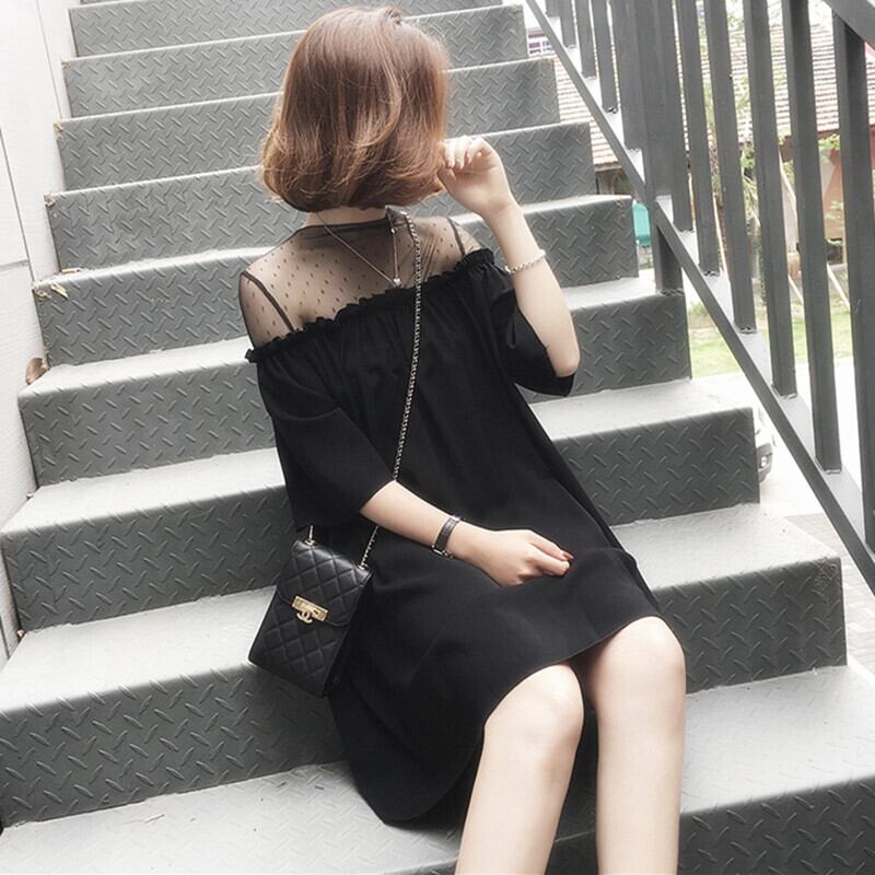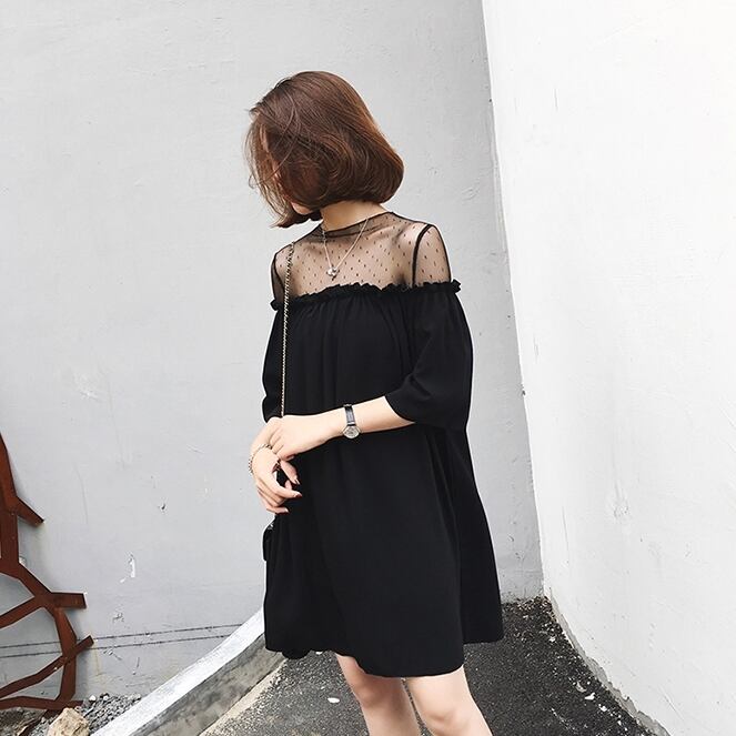 シフォン Aライン 膝上 ミニワンピ ドット柄 オフショルダー フェイク フリル シンプル 半袖 無地 ブラック 大人 カワイイ セクシー シースルー 二次会 パーティー フォーマル 女子会 プラスサイズ 大きいサイズ 春 夏 秋