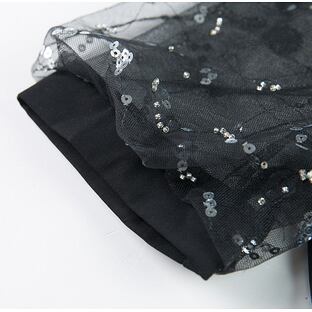 スパンコールを施したシースルー袖で華やかな印象に♪