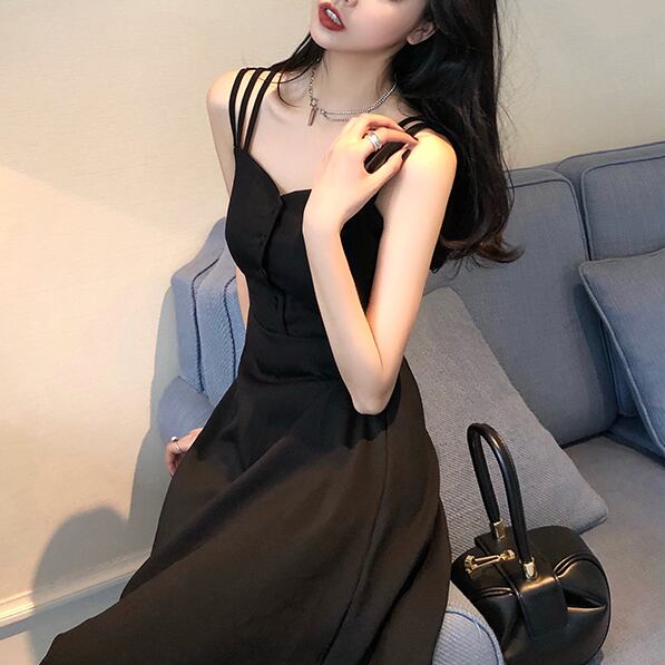 3本の肩紐デザインがポイントのキャミワンピースです。