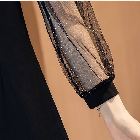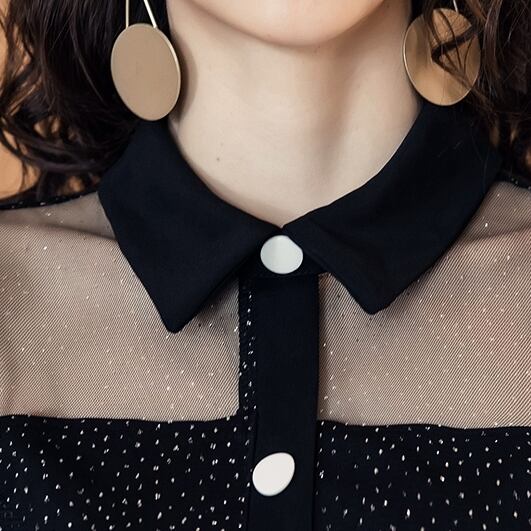 シフォン ミニ丈 ワンピース ミニワンピ シースルー ランタンスリーブ 長袖 ロングスリーブ ボタン シャツ ブラウス シャツワンピ 襟 タイト フレア ブラック 黒 安い カワイイ オシャレ 二次会 パーティー 女子会 かっこいい シンプル 春 夏 秋 大きいサイズ