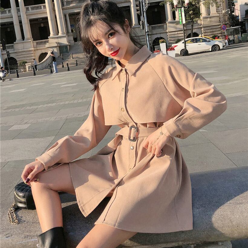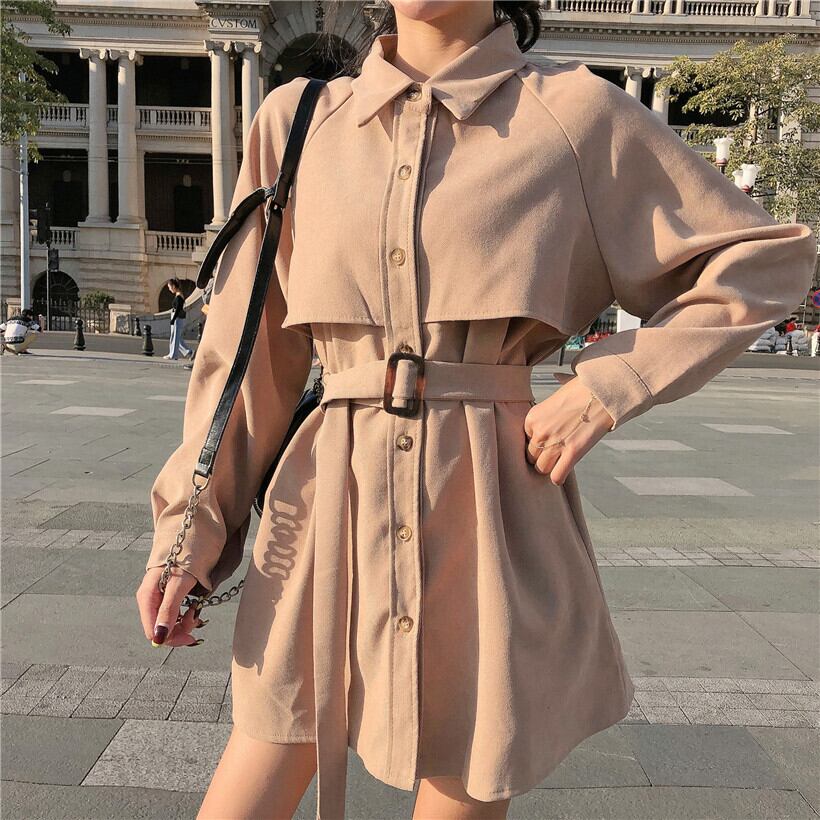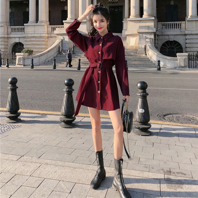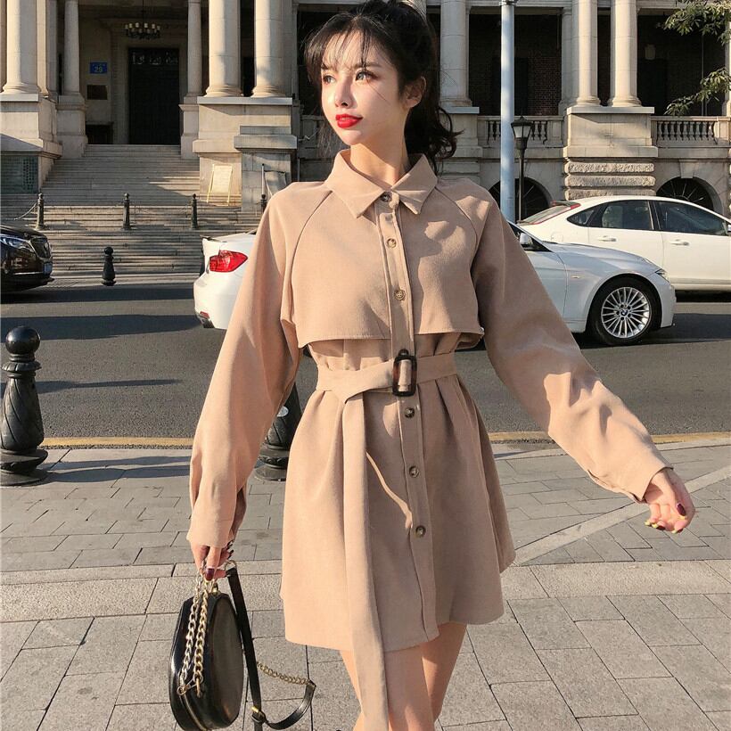 全2色 コート風 シャツワンピース ウエストマーク ベルト付き Aライン 長袖 ワンピ ミニ丈 ショート丈 可愛い 大人可愛い レディース ガーリー カジュアル きれいめ お出かけ 通勤 買い物 デート 女子会 春