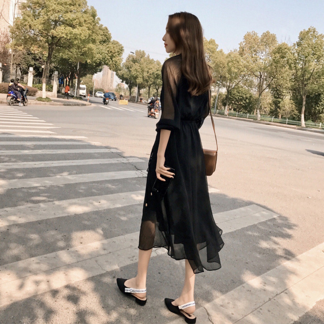 シフォンの透け感が大人可愛いワンピースです。