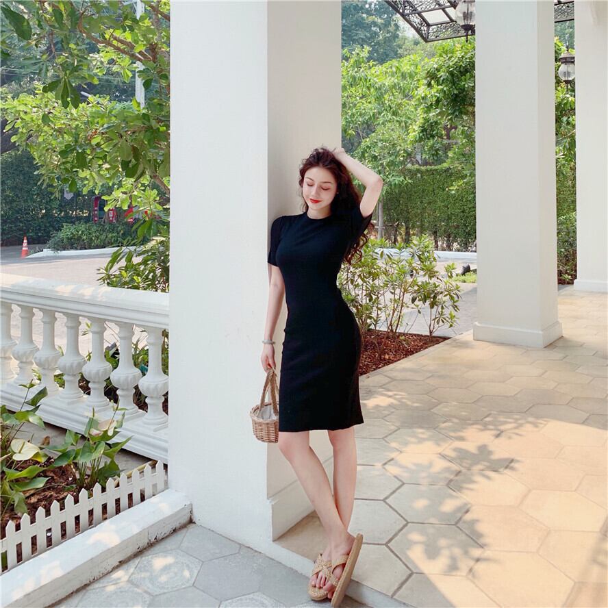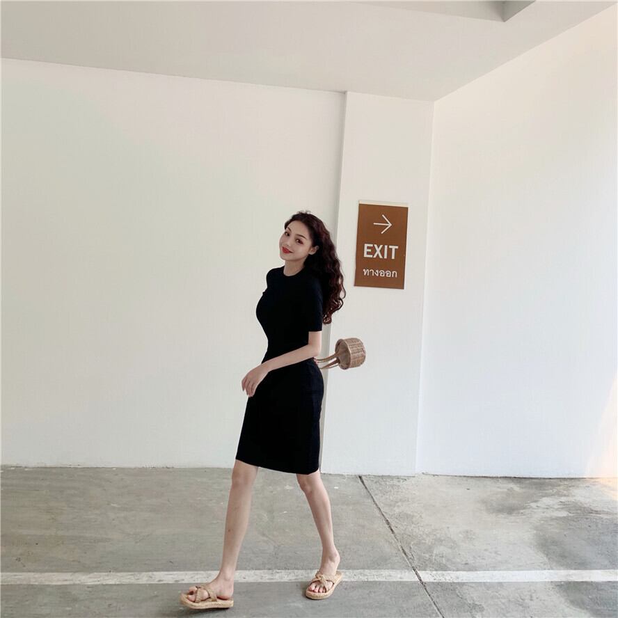 全6色 ワンピース 半袖 カットソーワンピ シンプル 無地 タイト クルーネック 春 夏 秋 膝上 ミドル丈 大人 カジュアル ガーリー レトロ オシャレ カワイイ