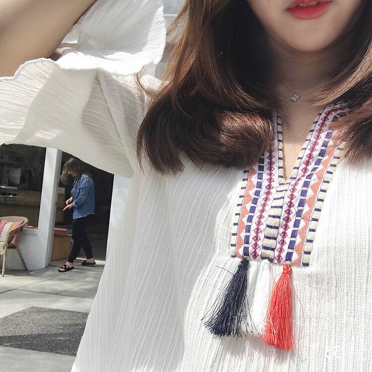 刺繍 タッセル ワンピース カフタン Vネック シフォン フレアスリーブ ティアード Aライン 五分袖 ワンピ ひざ丈 可愛い 大人可愛い レディース ガーリー レトロ フェミニン キュート 清楚 お出かけ 通勤 買い物 デート 女子会 春