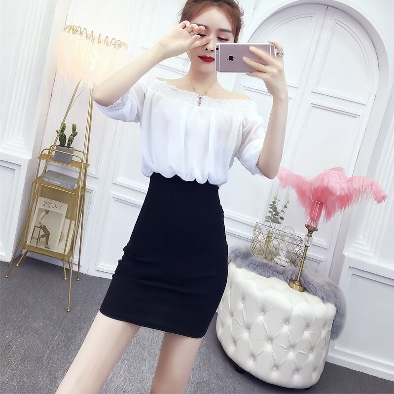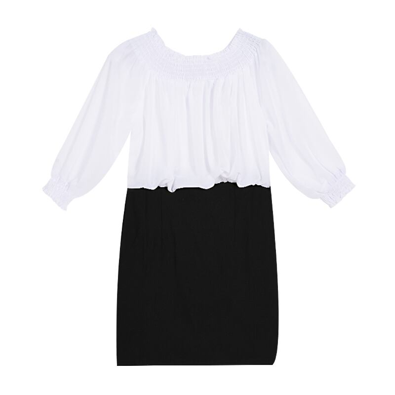 全4色 オフショルダー ワンピース シフォン ストレッチ 5分袖 タイト ナイトドレス キャバ嬢 ミニ丈 ミニワンピ ゴム フリル 無地 シンプル バイカラー フェミニン カワイイ 妹コーデ パーティー 二次会 オシャレ レディース 春 夏 秋