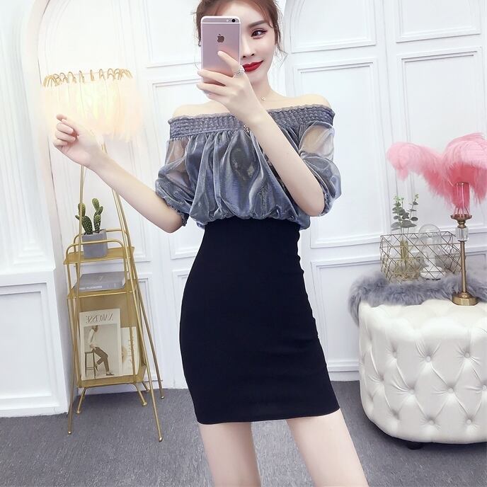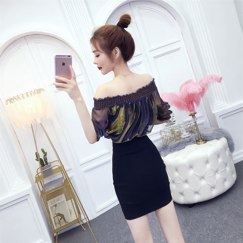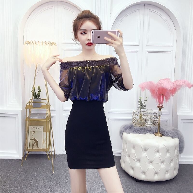 全3色 シフォン ワンピース ストレッチ オフショル ミニワンピ タイト 5分袖 フリル シースルー エレガント パーティー キャバ嬢 ドレス 大人 レディース 春 夏 秋 オシャレ