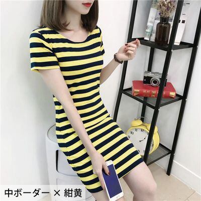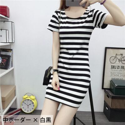 全13種 選べるボーダー ストライプ ボーダーTシャツワンピース ラウンドネック 半袖 ワンピ ひざ丈 可愛い 大人可愛い レディース シンプル カジュアル お出かけ 通勤 買い物 夏