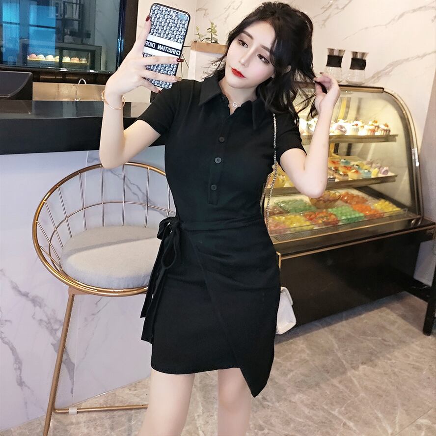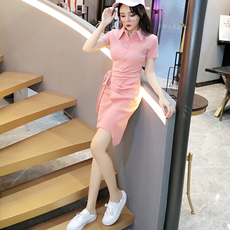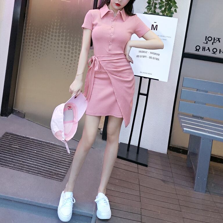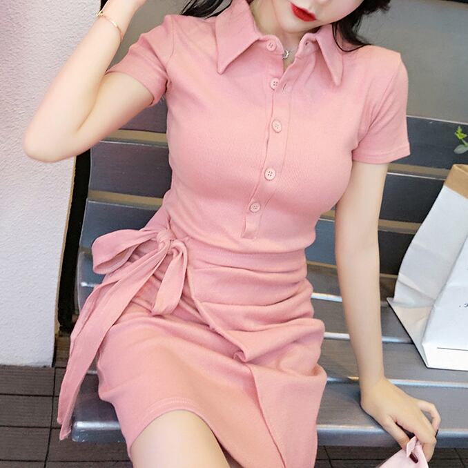 全2色 ポロ襟 ラップワンピース ハイウエスト ウエストリボン 半袖 ワンピ ミニ丈 ショート丈 可愛い 大人可愛い レディース カジュアル スポーティー フェミニン キュート お出かけ 通勤 買い物 アウトドア 夏