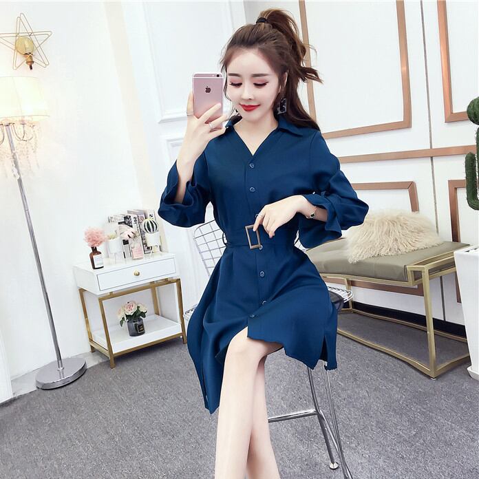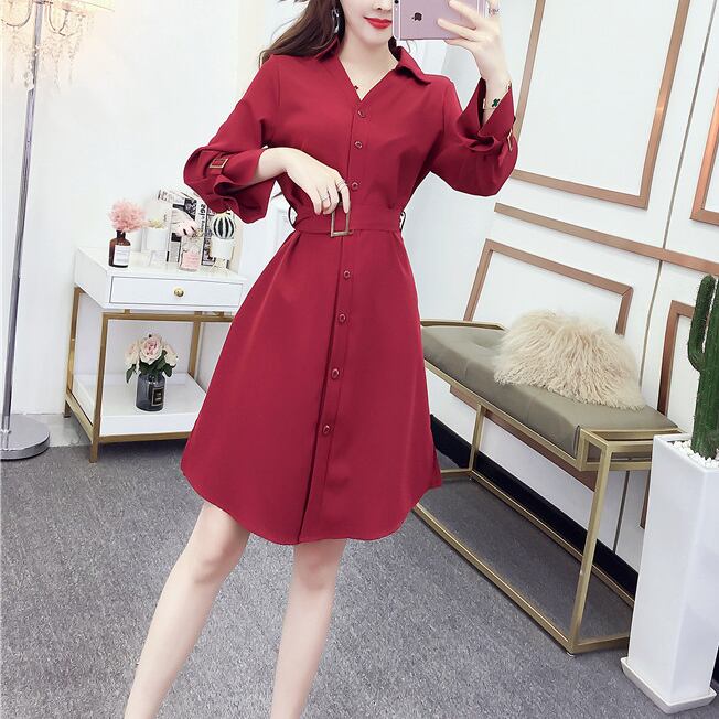 全3色 ベルト付き シャツワンピース ワンピース フレア スリット Vネック 襟付き ハイウエスト Aライン 長袖 ワンピ ひざ丈 可愛い 大人 レディース きれいめ フェミニン カジュアル エレガント 上品 お出かけ 通勤 買い物 デート 女子会 春