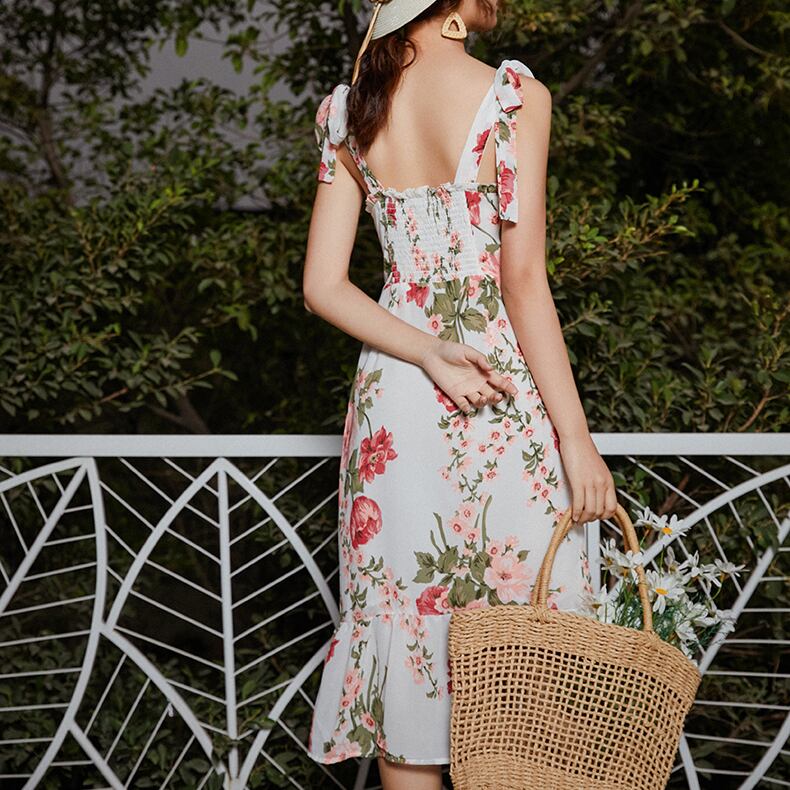花柄 キャミワンピース ティアード シフォン フリル ハイウエスト キャミワンピ ミモレ丈 可愛い 大人可愛い レディース ガーリー レトロ フェミニン キュート 清楚 上品 お出かけ 旅行 リゾート 買い物 デート 女子会 大きいサイズ 夏