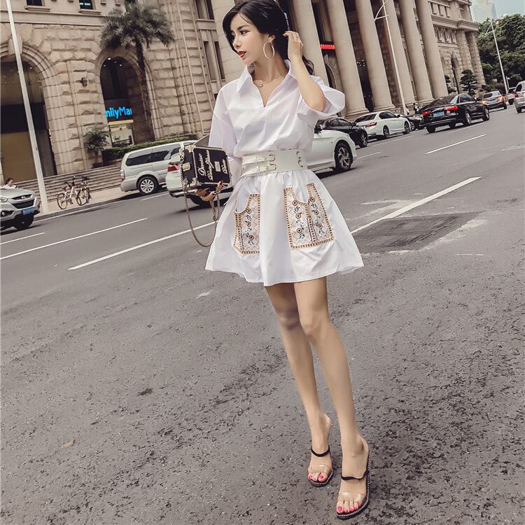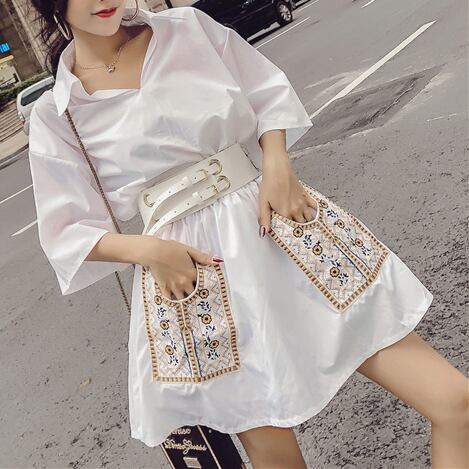チロリアン エスニック ベルト付き シャツワンピース ボヘミアン Vネック ハイウエスト Aライン 七分袖 ワンピ ミニ丈 ショート丈 可愛い 大人可愛い レディース レトロ フェミニン キュート お出かけ 旅行 リゾート 買い物 デート 夏