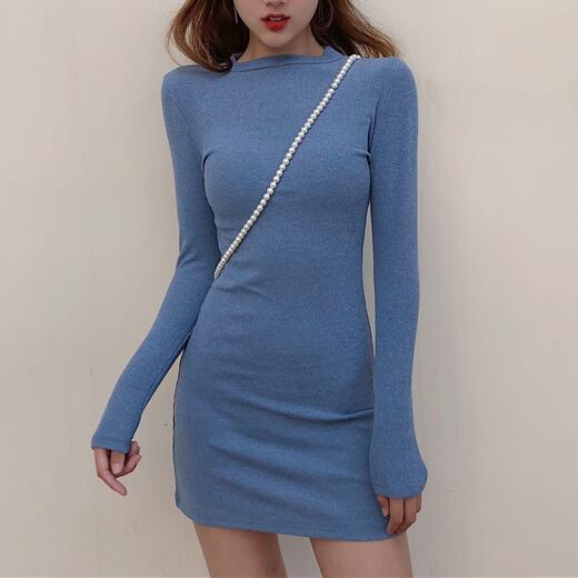 全4色 細リブ ニットワンピース タイト ラウンドネック ハイウエスト ボディコンシャス 長袖 ワンピ ショート丈 ミニ丈 可愛い 大人可愛い レディース カジュアル フェミニン お出かけ 通勤 買い物 春
