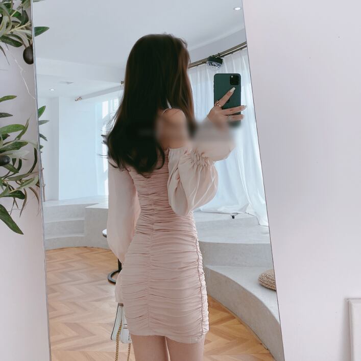 ワンピース ミニ シャーリング ミニワンピ オフショル スリング 肩紐 アジャスター タイト フリルスリーブ タイト スリム ピンク カワイイ キャバ嬢 上品 エレガント おしゃれ レディース ナイトドレス デート お出かけ 旅行 リゾート 春 夏