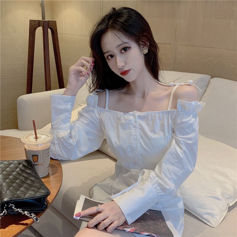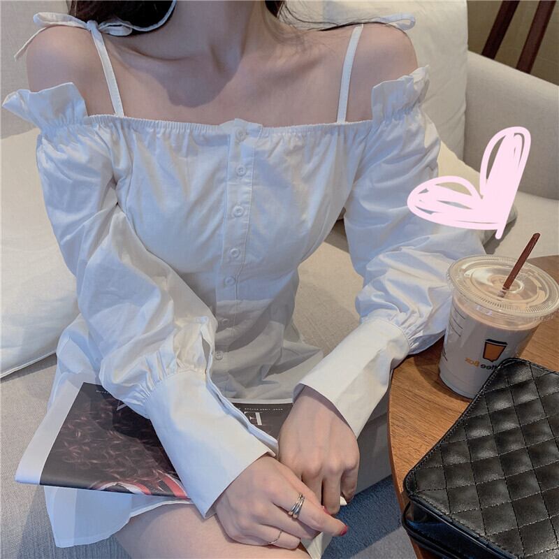 オープンショルダー ワンピース フリル袖 フロントボタン ハイウエスト Aライン 長袖 ワンピ ミモレ丈 可愛い 大人可愛い レディース ガーリー フェミニン キュート 清楚 上品 お出かけ 通勤 買い物 デート 女子会 春