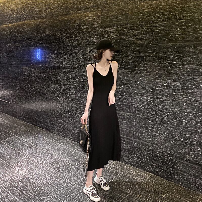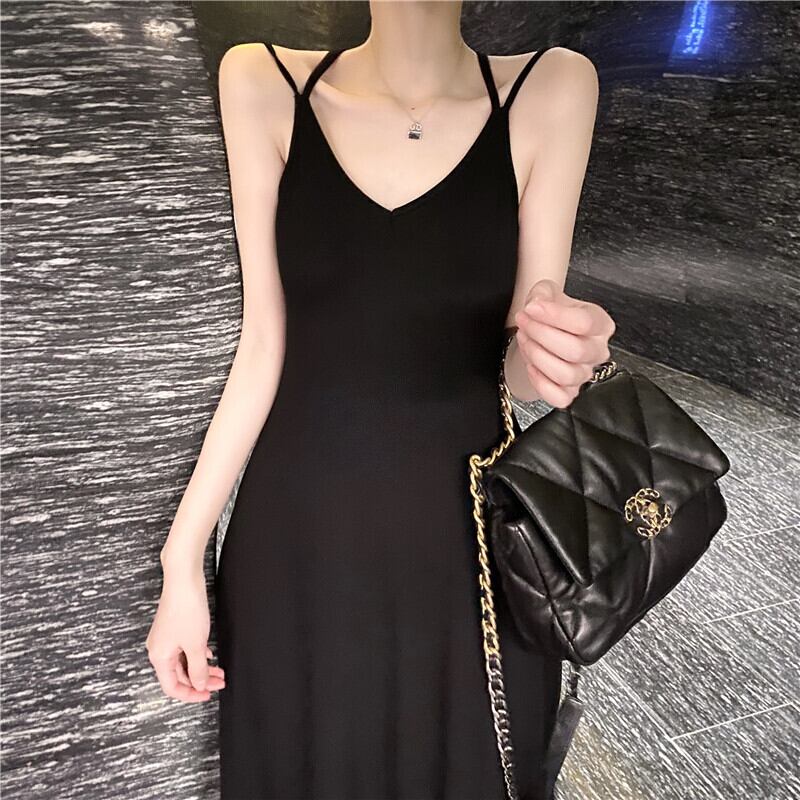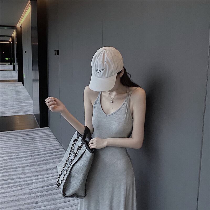 全2色 スリング ワンピース ロングワンピ Vネック 背中開き カットソー Aライン タイト 無地 シンプル カジュアル