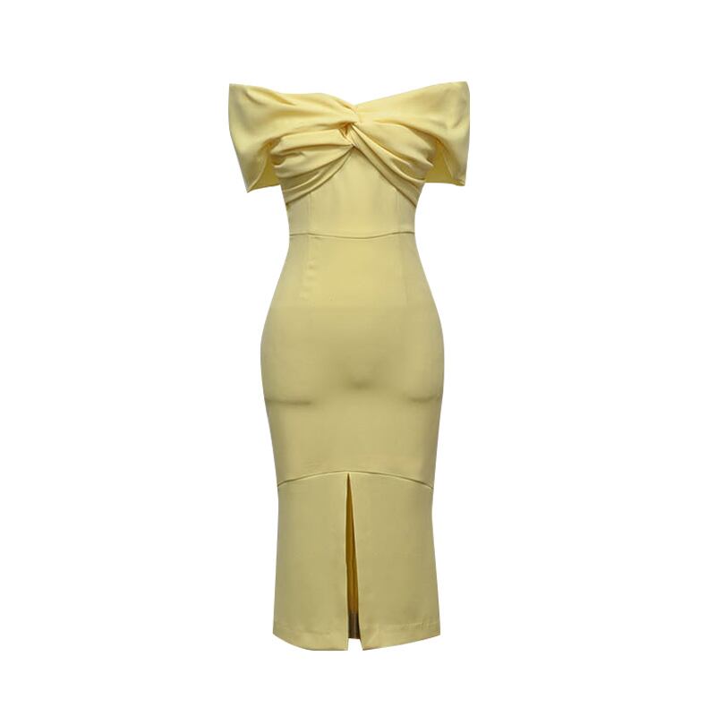 ワンピース オフショルダー オフショル ワンピ スリット ジップ ツイスト スリム 無地 シンプル ひざ丈 大人 お呼ばれ ナイトドレス パーティー キャバ嬢 大人 かわいい 二次会 春 夏