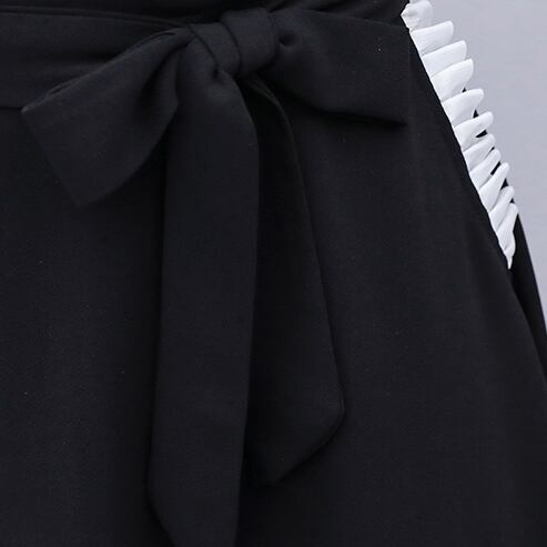 ワンピース シャツ ワンピ ひざ丈 フリル Aライン ハイウエスト リボン Vネック 半袖 エレガント 上品 大人 おしゃれ かわいい レトロ フェミニン クラシカル モノトーン 春 夏 秋 大きいサイズ プラスサイズ