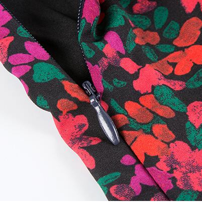 ブラック地に色とりどりの花柄が映えるキャミワンピースです。