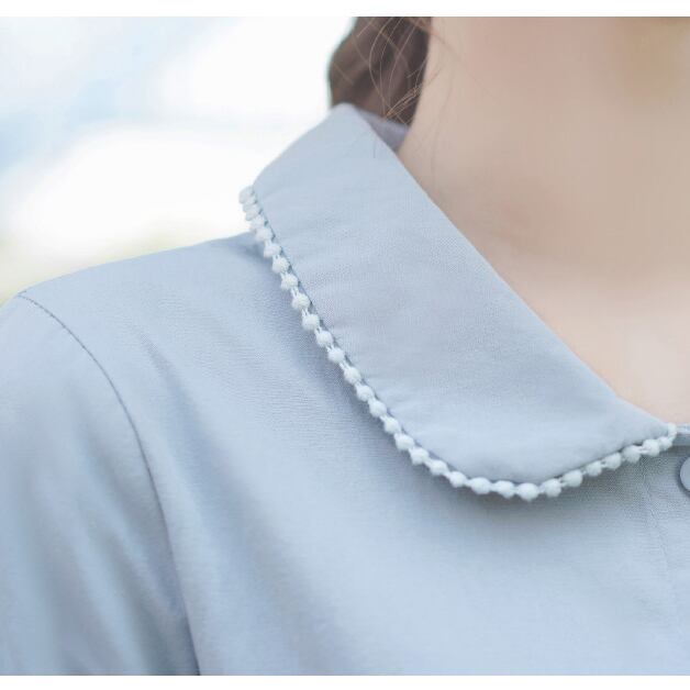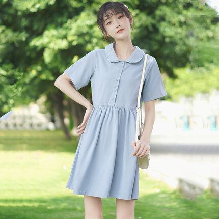 襟付き ワンピース ゆったり フロントボタン 丸襟 ハイウエスト Aライン 半袖 ワンピ ミニ丈 ショート丈 可愛い 大人可愛い レディース ガーリー レトロ フェミニン キュート 清楚 上品 お出かけ 通勤 買い物 旅行 デート 女子会 夏