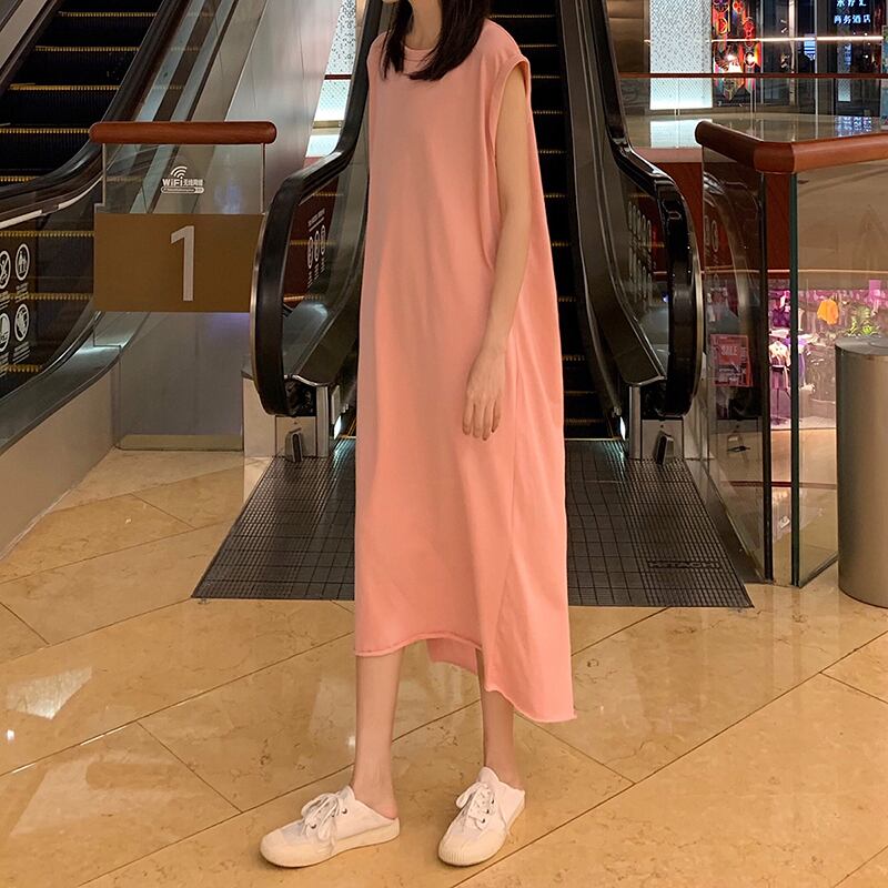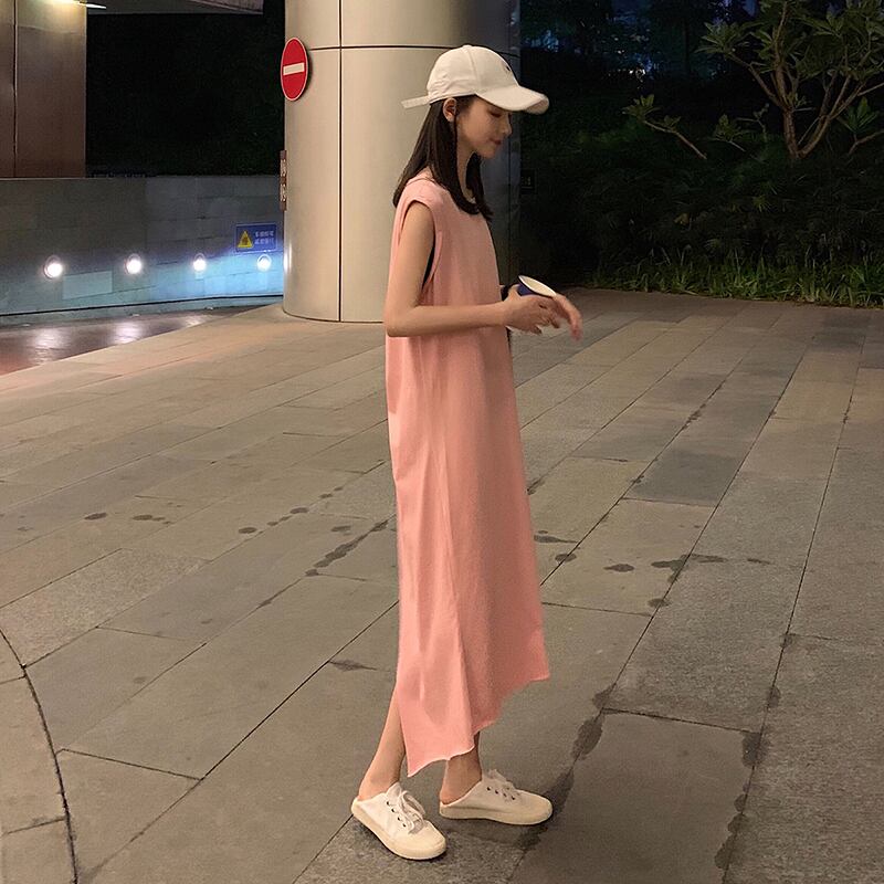 全2色 ワンピース ロング ワンピ Aライン スリット ノースリーブ 無地 シンプル 背中開き ビーチ 旅行 リゾート 大人 エレガント カジュアル シック おでかけ お呼ばれ 韓国 春 夏 安い かわいい