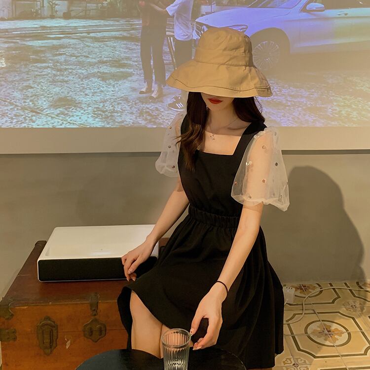 透け感が可愛いキラキラボリューム袖のワンピース♡