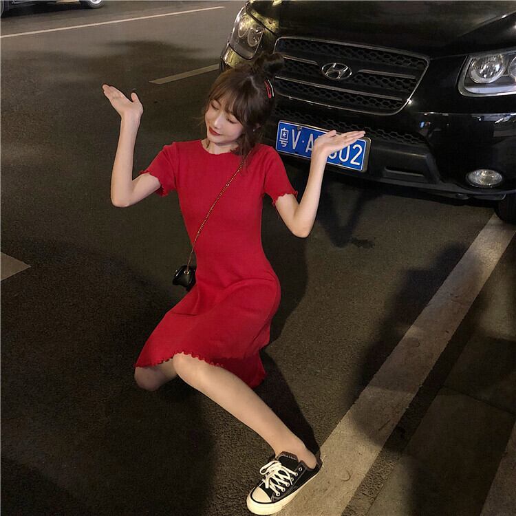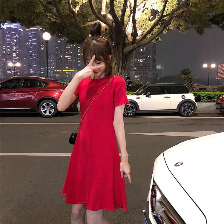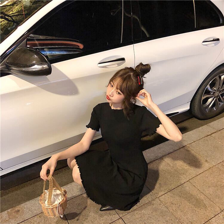 全2色 ワンピース 半袖 ラウンドネック 無地 フレア フリル シンプル 膝上 ミニ ワンピ ガーリー カジュアル 妹コーデ かわいい 韓国 レディース 女子会 おでかけ デート 春 夏