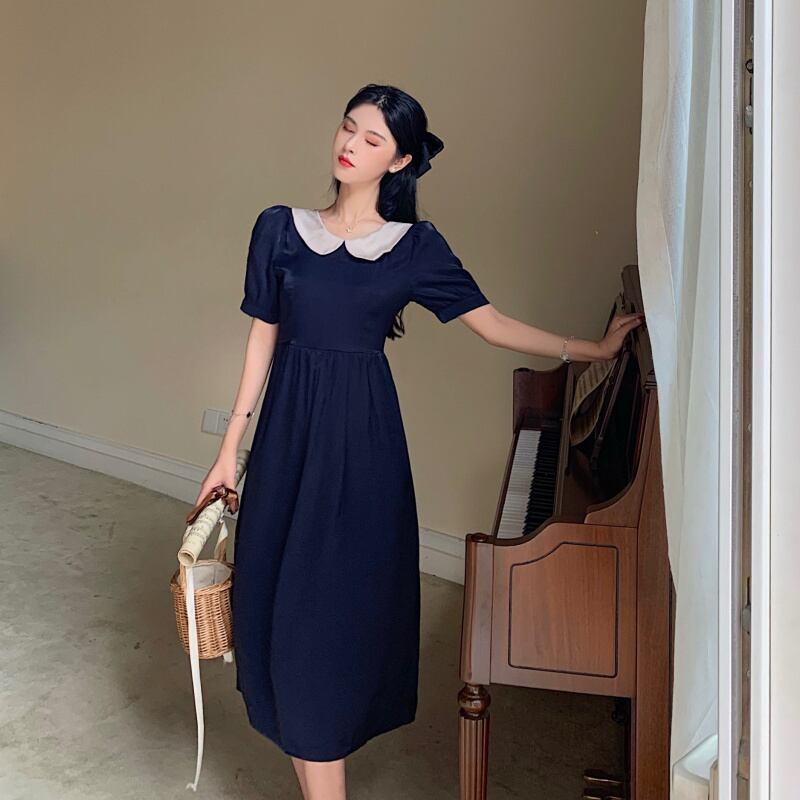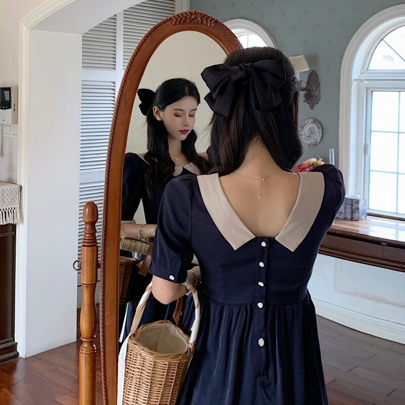大きめの襟がポイントのワンピースが登場です。