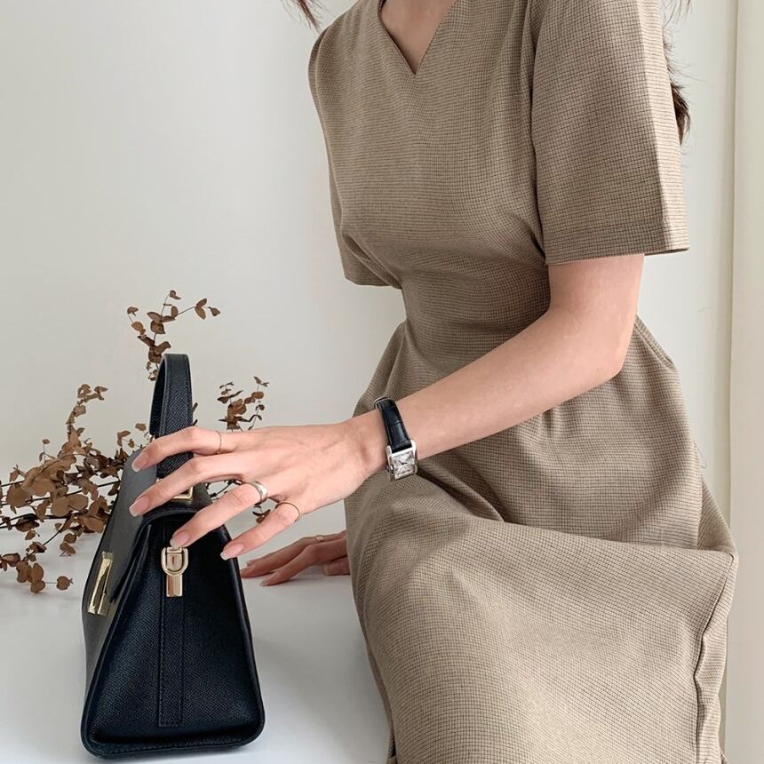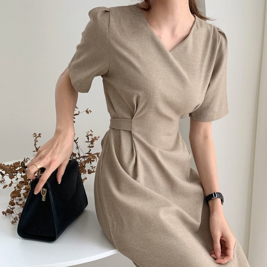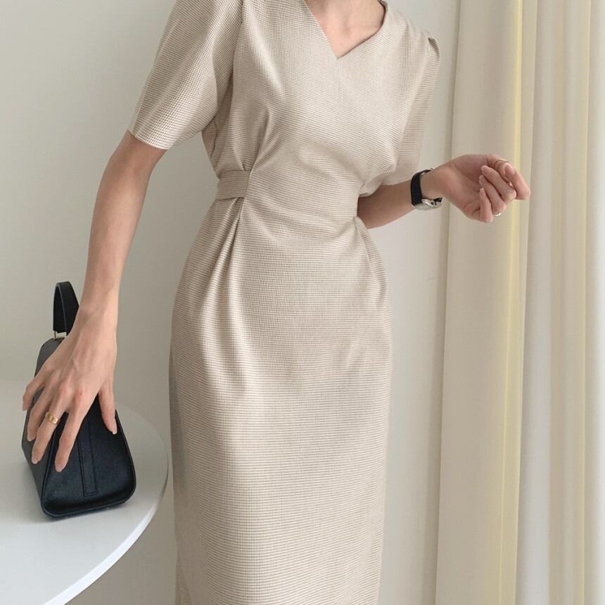 全2色 ワンピース ミディ丈 ワンピ シンプル Vネック ウエスト リボン シンプル タック 大人 レディース クラシカル お呼ばれ シック エレガント お呼ばれ フォーマル 高見え 上品 春 夏 秋
