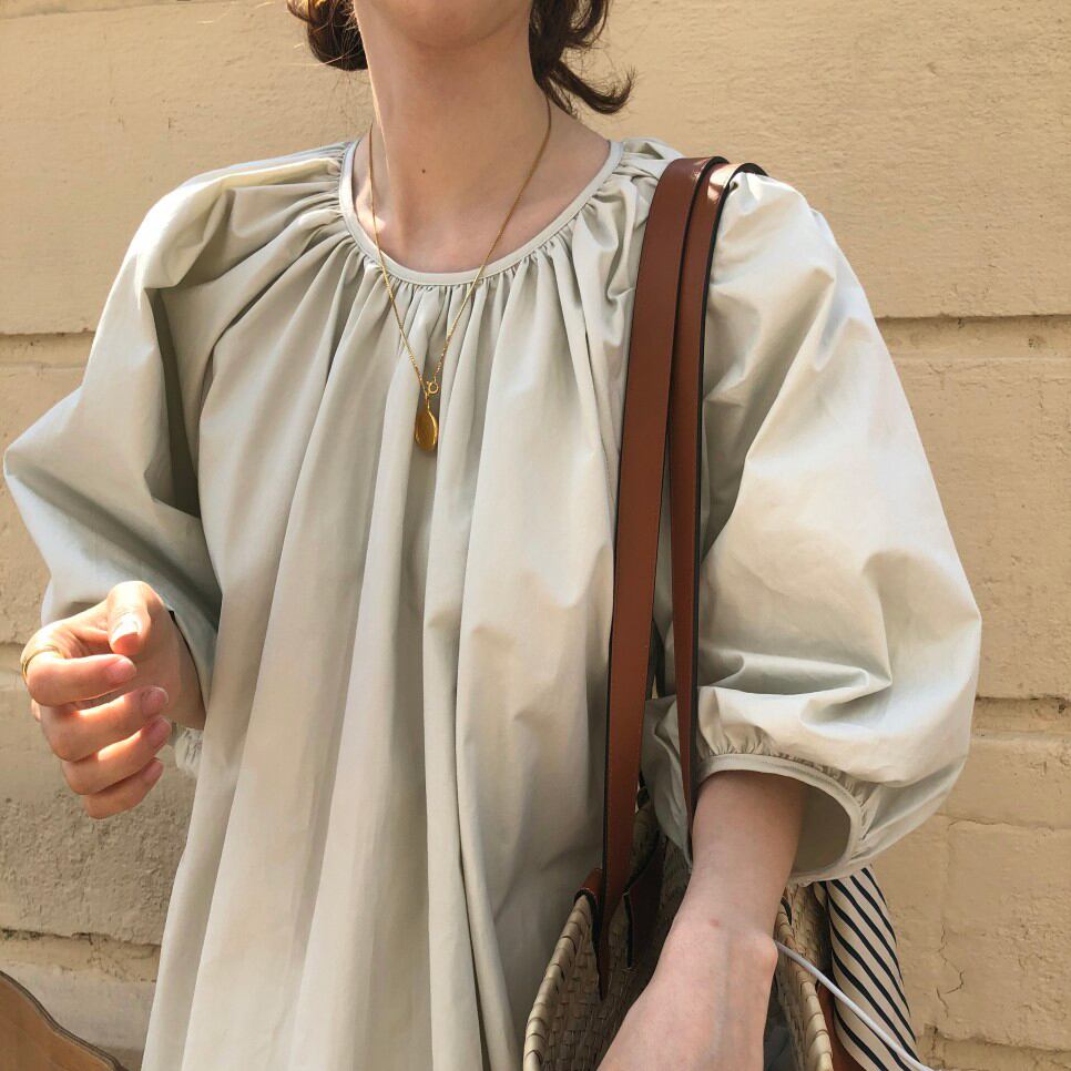 たっぷりはいったギャザーとフレアなシルエットが女性らしいワンピースです。