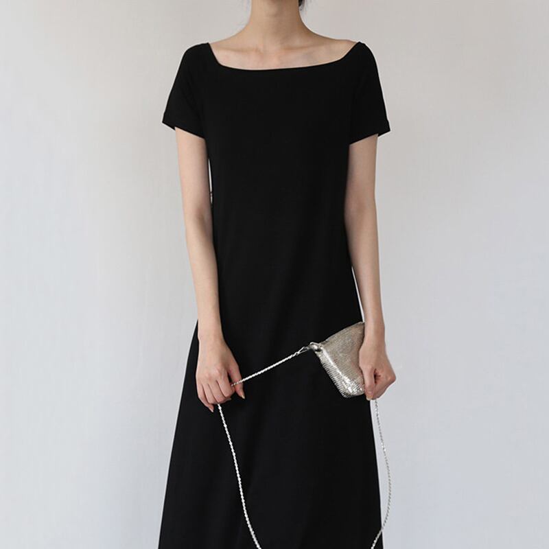 無地 オフショルワンピース デコルテ ハイウエスト Aライン 半袖 ワンピ ミモレ丈 可愛い 大人可愛い レディース きれいめ レトロ フェミニン エレガント フォーマル シック 清楚 上品 お出かけ 通勤 買い物 旅行 デート 女子会 夏