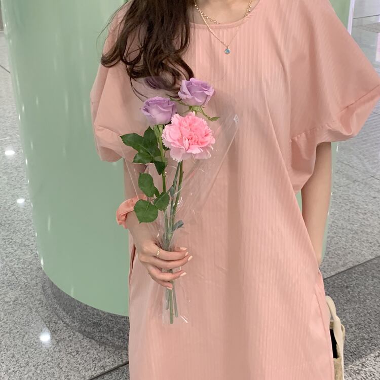 薄いストライプの柄が施されているワンピースです。