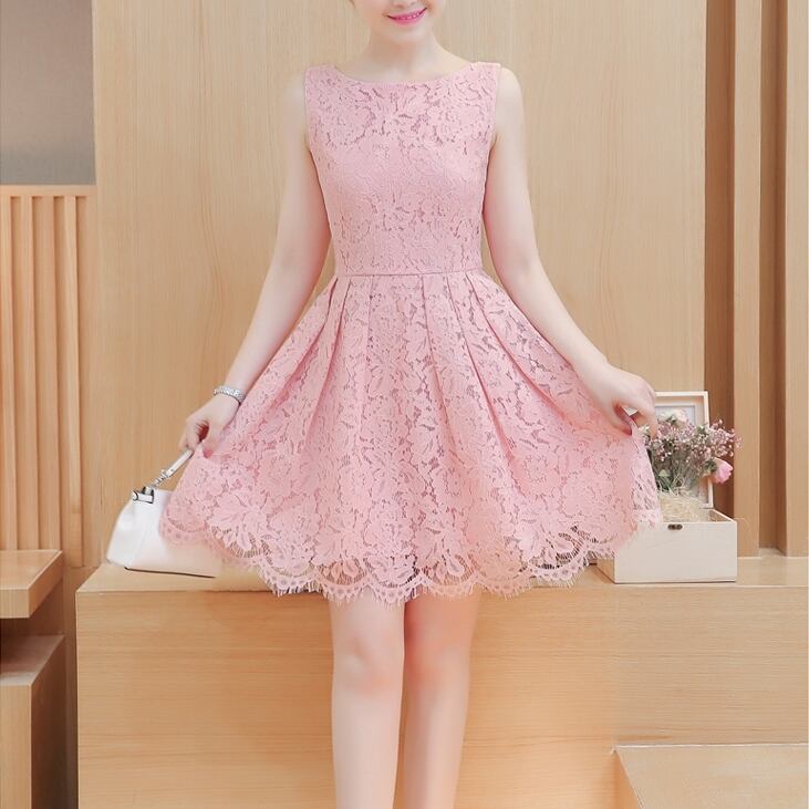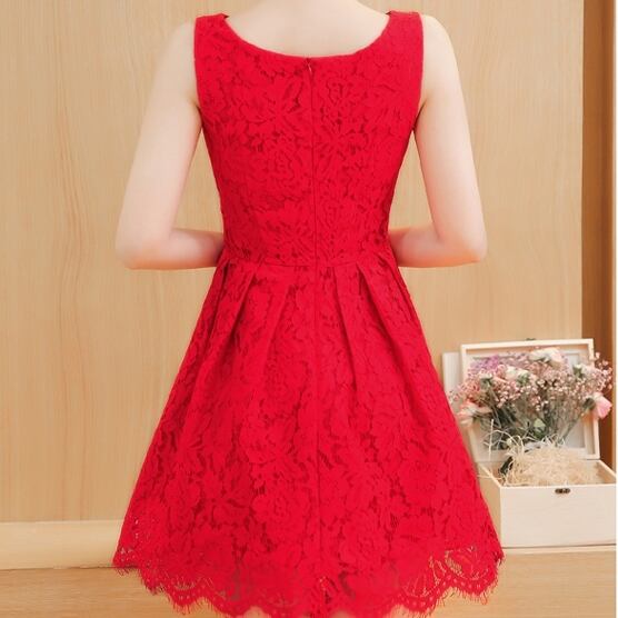 全6色 ワンピース ノースリーブ レース 花柄 タック フリル フレア ファスナー 背中ジップ 膝上 ワンピ ミニ お呼ばれ パーティー 二次会 結婚式 ナイトドレス オシャレ 上品 エレガント 大人 レディース 無地 シンプル ガーリー