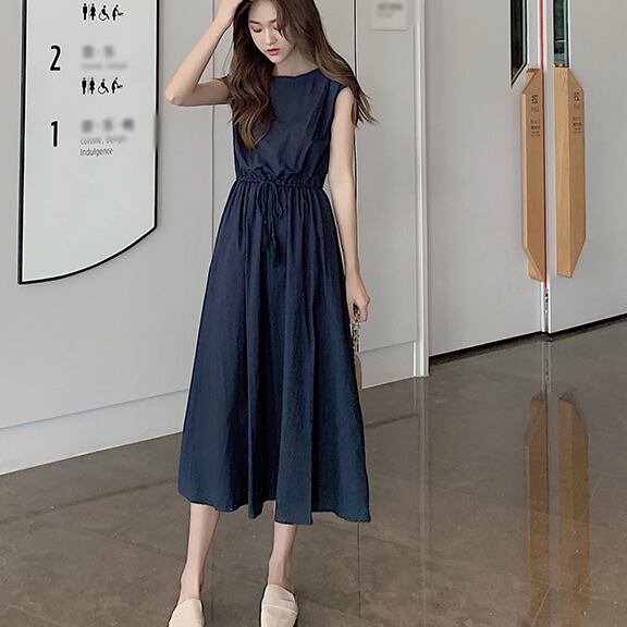 ノースリーブでウエストゴム仕様になっているワンピースが登場です。