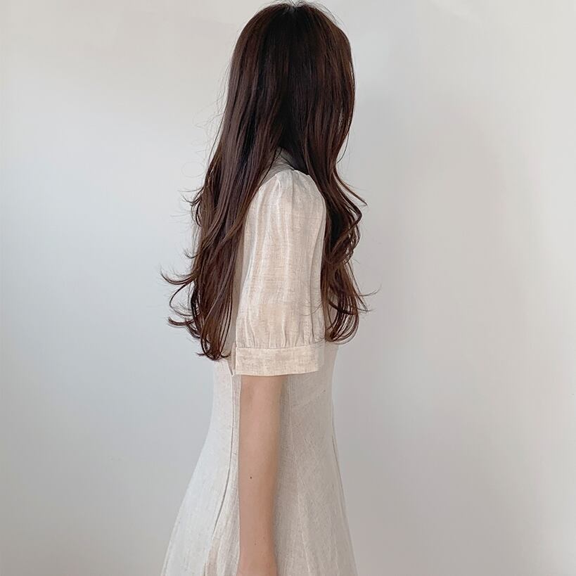 襟がついていて、パフスリーブがレトロかわいいワンピースが登場です。