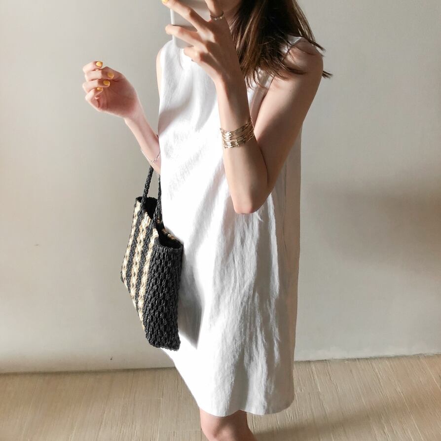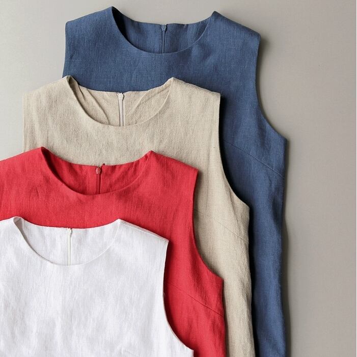 全4色 ワンピース ノースリーブ Aライン 麻 リネン ラウンドネック 膝上 ミニ ワンピ 無地 アックシンプル 上品 カジュアル ファスナー ジップ 大人 レディース コットン エレガント ナチュラル おしゃれ 高見え 春 夏 おでかけ デート 女子会