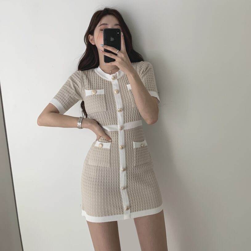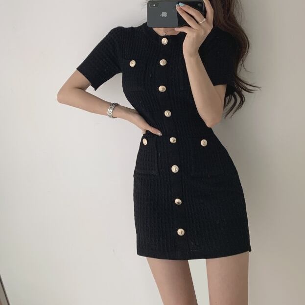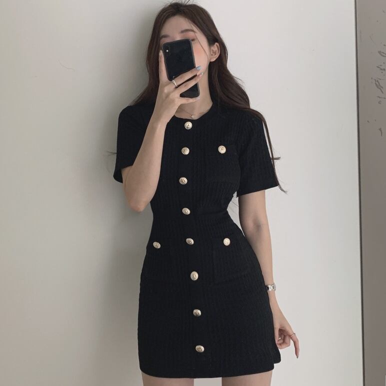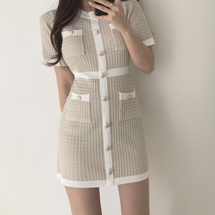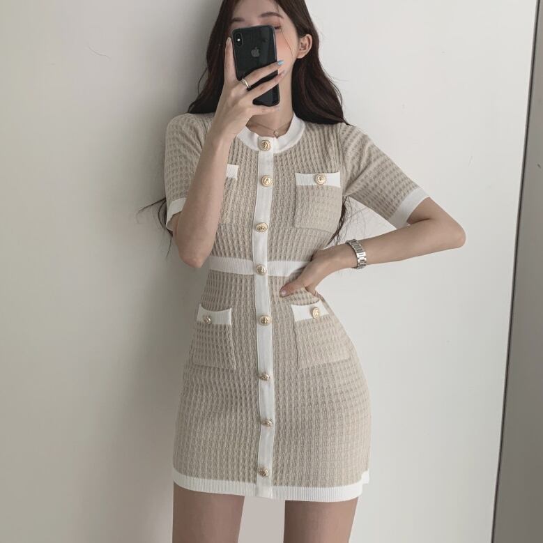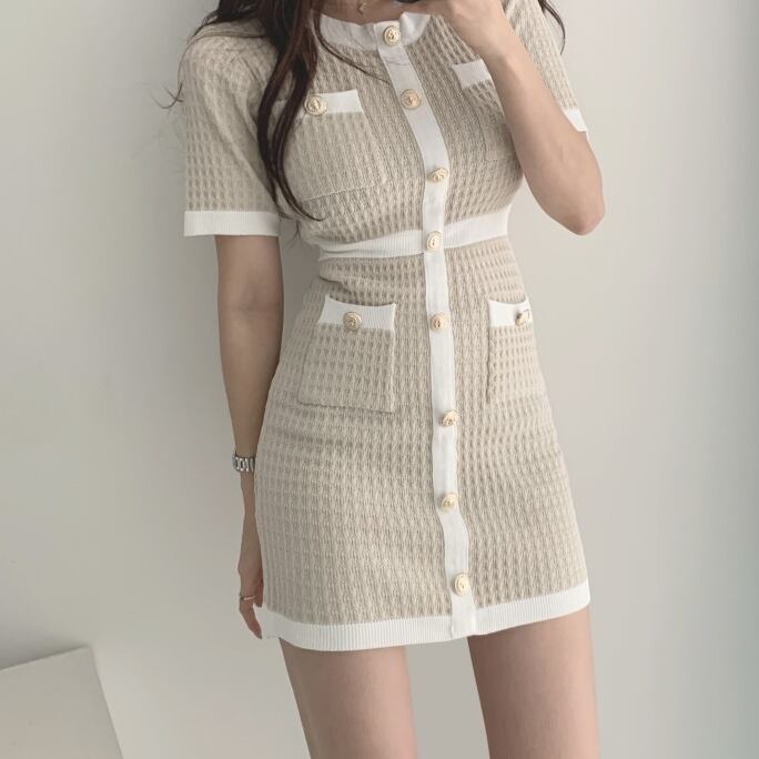 全2色 ワンピース タイト 半袖 スリム コンサバ ライン ワッフル ニット ミニ ワンピ クラシカル 大人 上品 シック エレガント キャバ嬢 レディース おしゃれ かわいい おでかけ お呼ばれ 女子会 夜会