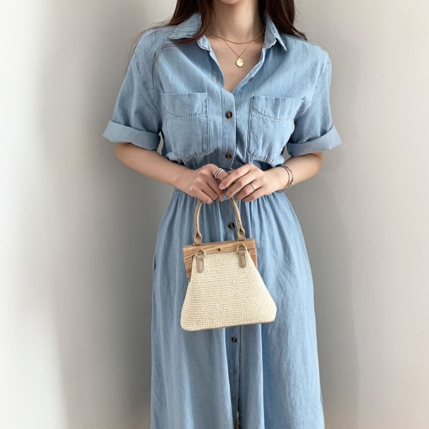 デニムシャツ風のロングワンピースが登場です。